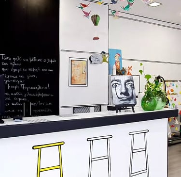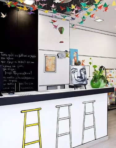 Ο χώρος έχει διαμορφωθεί κατάλληλα και η διακόσμηση φέρει την προσωπική σφραγίδα της κυρίας Φιλίππα Κατσαρού η οποία έχει δώσει την καλλιτεχνική νότα αλλά και την οικία και ζεστή όψη που αναζητάμε. Λαμβάνοντας πάντα υπόψη τα απαιτούμενα μέτρα ασφαλείας που χρειάζεται ένας πολύ-χώρος